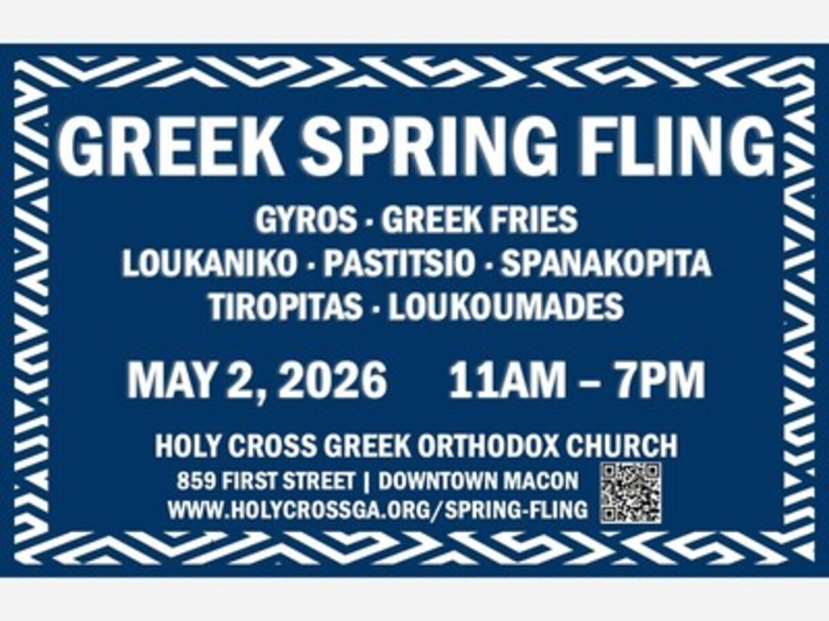 Central Georgia Greek Festival's Greek Spring Fling will take place on Saturday, May 2nd, 2026, from 11 a.m. until 7 p.m.