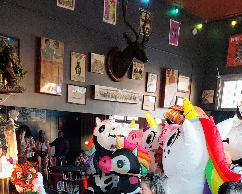 A unique birthday celebration for Storyteller Macon's Koryn Young included a gaggle of dancing, inflatable unicorns at Vice Bar during Cognitive Dissonance on Thursday (Photographer Nate Weeks)FRIDAY, October 17th