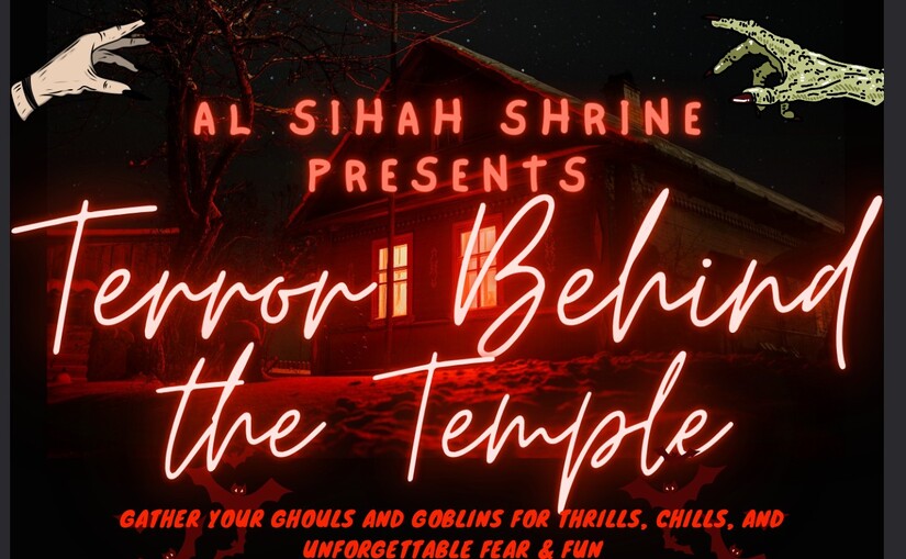 Terror Behind the Temple is a haunted house experience sponsored by the Al Sihah Shrine Center. Terror Behind the Temple will be open from Friday, October 17th, through Saturday, October 18th, Friday, October 24th, through Saturday, October 25th, and on the spookiest day of the year, Friday, October 31st. Children 12 and under get in under with an adult with a valid admission, with a limit of 4 children per adult. Tickets for the Terror Behind the Temple haunted house can be purchased at the door for $15 or on eventbrite.com.