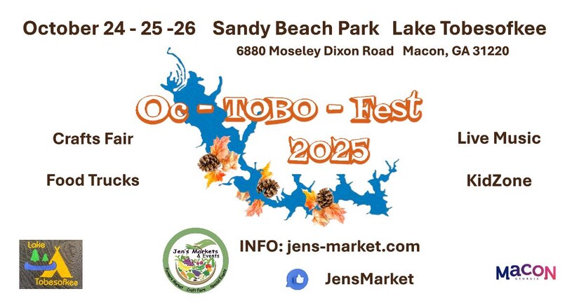 — Oc-TOBO-Fest (Live Music) (10/24-10/26): Sandy Beach Park at Lake Tobosofkee > 3-7 p.m.