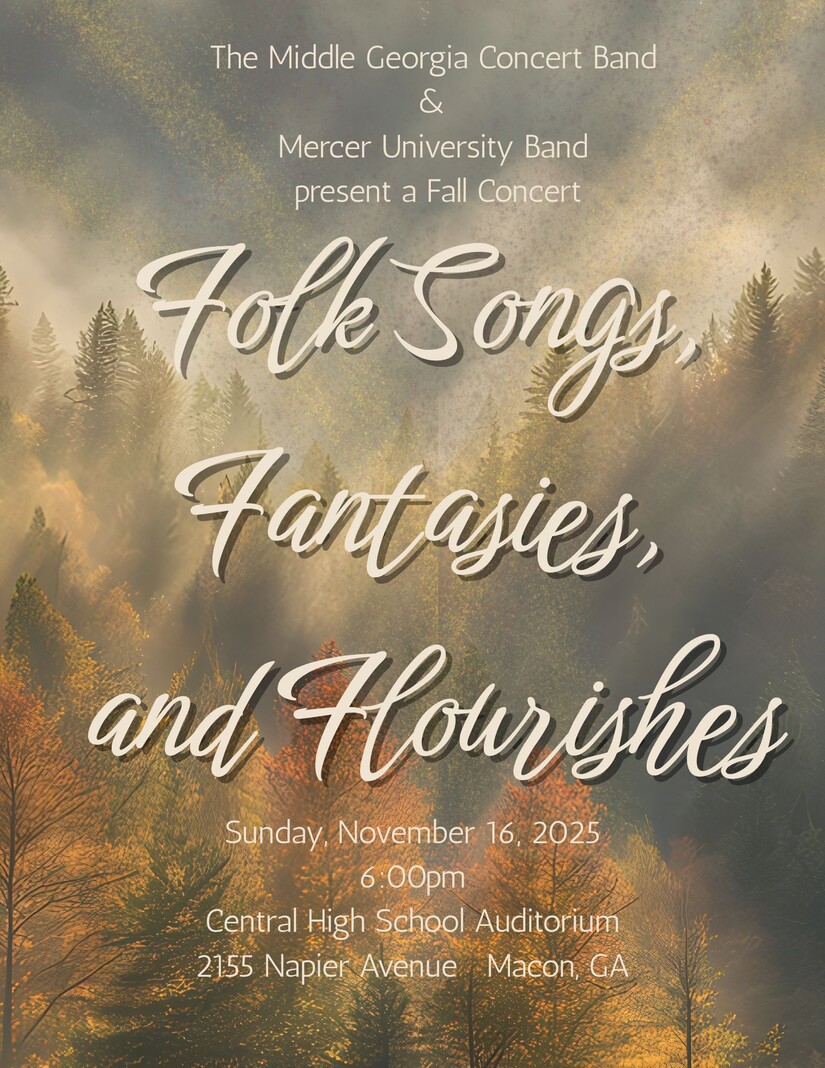 — Folk Songs, Fantasies, and Flourishes: A Fall Concert by the MGCB Middle Georgia Concert Band/Mercer University Band: Central High School > 6 p.m. (Free)