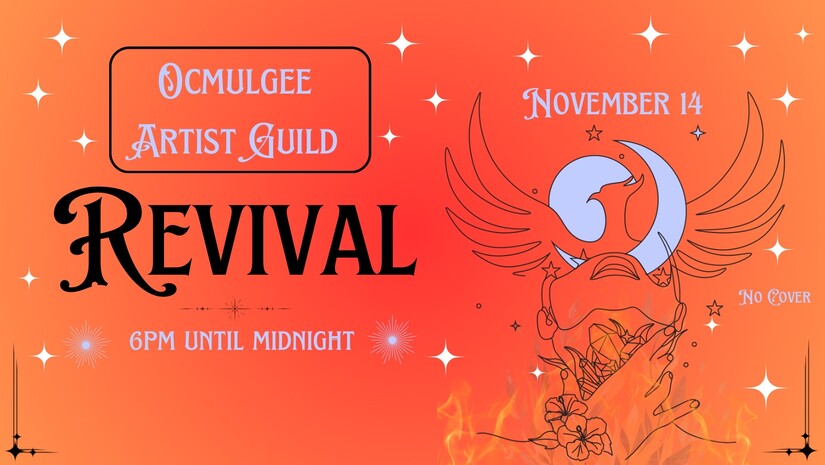 The Ocmulgee Artist Guild returns on Friday evening for a one-night-only fine art exhibit and art party celebrating creativity with artwork from more than a dozen talented local artists. The original artwork will be available for purchase at tiered and competitive prices, emphasizing the guild's commitment to making local, affordable, unique art accessible to the public. According to organizers, the evening's festivities will feature music, projected films, installations, and more. The event is kid-friendly until sundown, with complimentary drinks for guests 21 and over. OAG Revival has no cover charge and is open to the public (though donations are appreciated by OAG to help them continue presenting unique events like this free of charge).