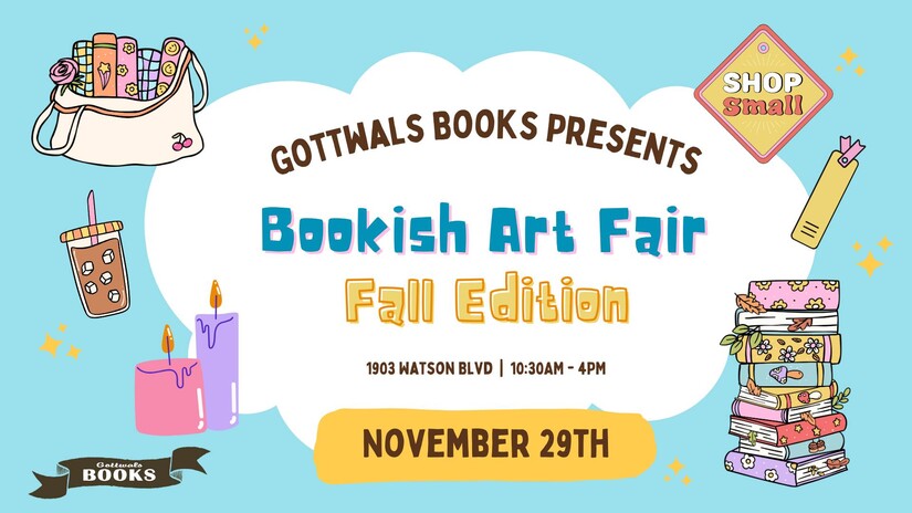 Gottwalls Books celebrates Small Business Saturday with a variety of local vendors selling candles, wax melts, bookmarks, stickers, earrings, personalized cups, fine art, Dungeons & Dragons merchandise, tote bags, keychains, plushies, and more this Saturday. More than 10 vendors are scheduled to participate in the bookish-themed fair, including The Honeybee Dragon, Lee & Rose Collective, J & R Creations, Bunnyroll, A Novel Bauble, Chris Garrett, The Goblin's Glen, Millie G., Julie D., Sarah H., Rose Bud Creations, and Michayla V. Gottwalls Books' Bookish Art Fair is free to attend.