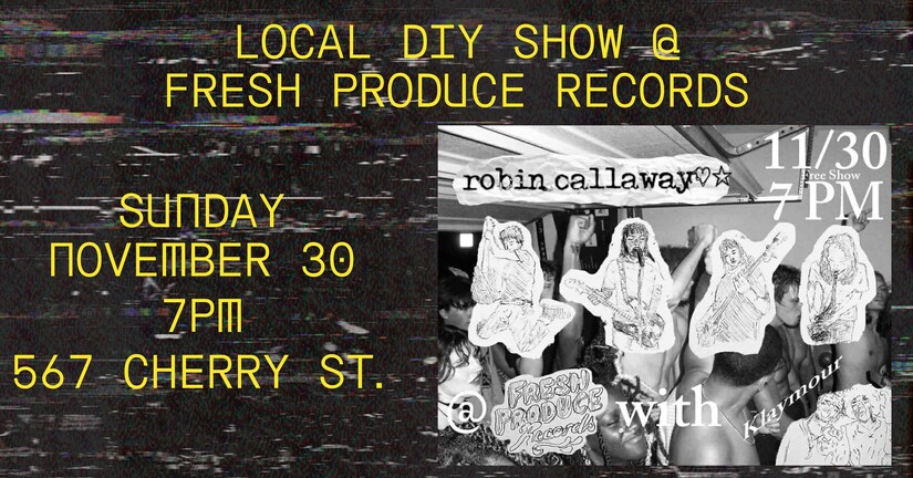 Fresh Produce Records hosts a unique music experience featuring performances from Robin Callaway and Klaymour. The Local DIY Show has no cover charge.