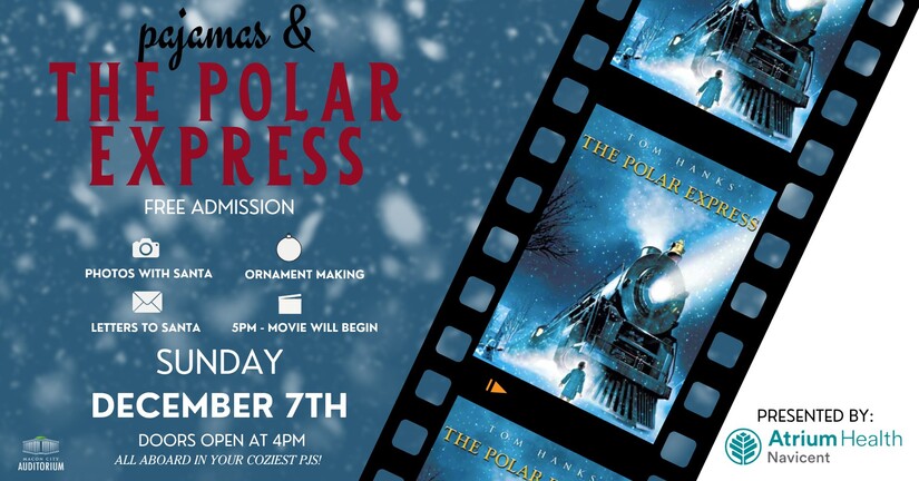 The Macon City Auditorium hosts Holiday Movie Night this Sunday with a screening of "The Polar Express" (2004) presented by Atrium Health Navicent. This event includes photos with Santa, ornament making, and letter writing to Santa before the movie begins at 7 p.m. The Georgia Department of Corrections serves as supporting partner for this all-ages event. Doors open at 6 p.m. with the movie beginning at 7 p.m. Holiday Movie Night is free and open to all ages.