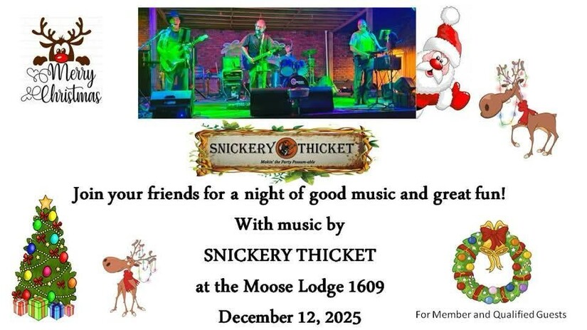 — Snickery Thicket: Moose Lodge > 8 p.m.-12 a.m. (Member or guest of member)