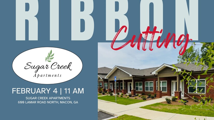 The Greater Macon Chamber of Commerce invites the public to celebrate the opening of Sugar Creek Apartments with a ribbon-cutting ceremony. The Sugar Creek Apartments is a senior and family community that has 80 units ranging from 881 to 1,341 square feet with LED lighting, outdoor patios, and an energy star rated appliance package.