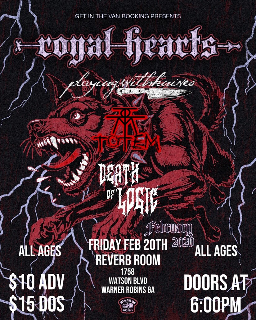 — Royal Hearts, Playing With Knives, and Totem (Get in the Van’s Royal Hearts): Reverb Room > 6 p.m. ($12.16 in advance/$15 at the door)