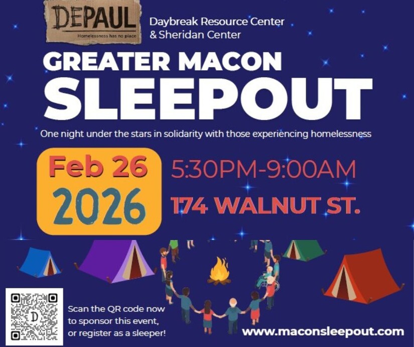 Middle Georgians are invited to join Depaul USA Daybreak/Sheridan Center in an evening outdoors to better understand the experiences of the many people who live without homes on Thursday. The 2025 Macon Sleepout also helps raise funds to help those in need in Middle Georgia.