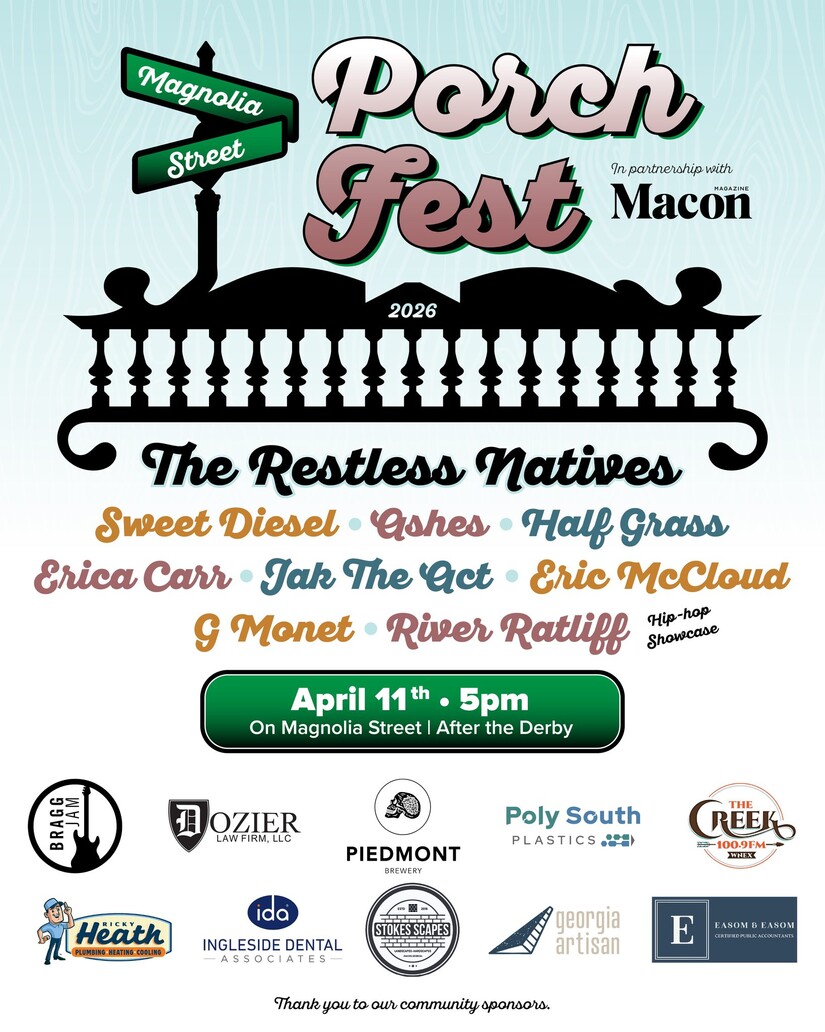 The Magnolia Street Porch Fest will include live music and a hip hop showcase (Graphic courtesy of Macon Magazine)Did we miss an event you are excited about? Leave a comment below to let others know about other fun and interesting events taking place this week in Middle Georgia.