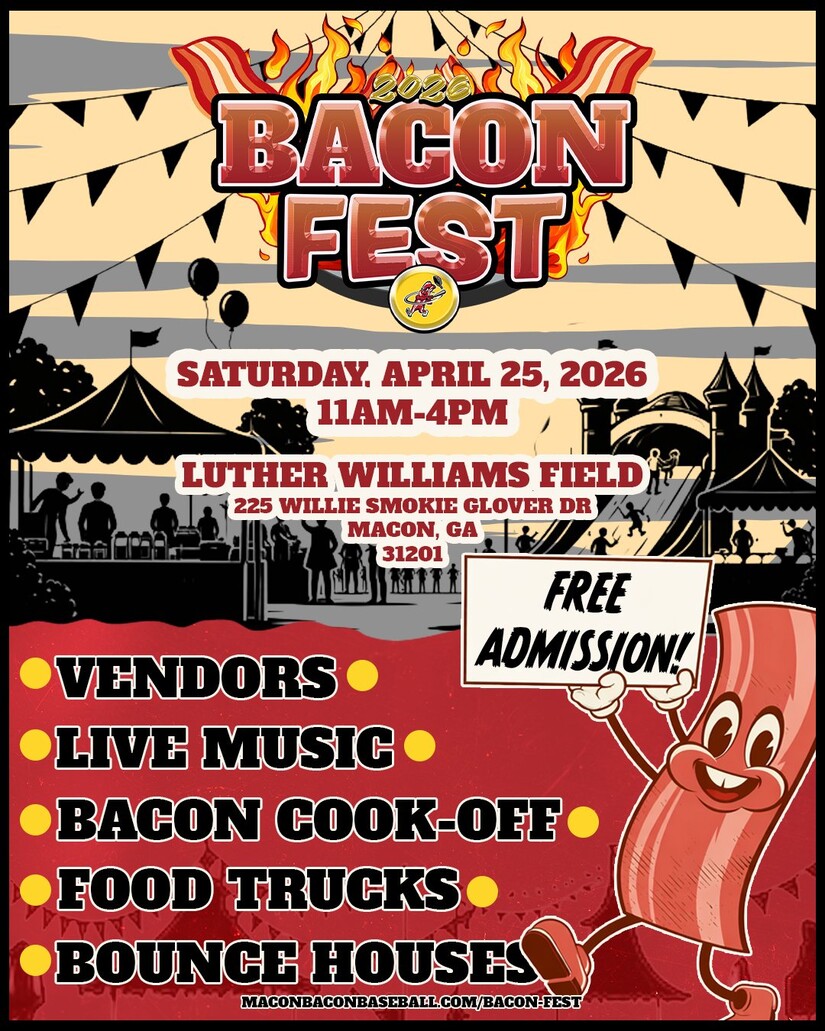 Middle Georgia will be celebrating all things bacon at Macon Bacon's Bacon Fest 2026 this Saturday. Historic Luther Williams Field will be filled with local vendors, while live music entertains attendees who can visit food trucks and bounce houses, all while enjoying bacon. Admission to Bacon Fest 2026 is free.