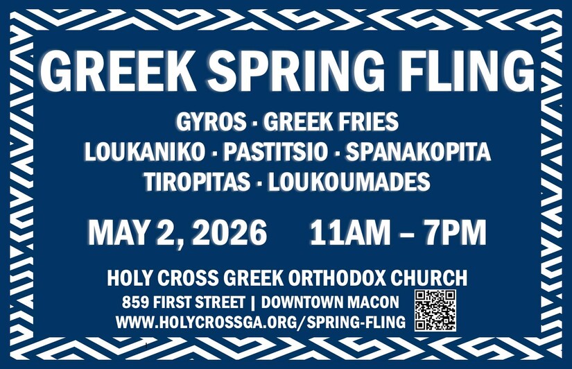 >> SATURDAY, May 2nd: Greek Spring Fling in Macon (11 a.m.-7 p.m.): The Central Georgia Greek Festival will hold its Greek Spring Fling on Saturday, May 2nd, with popular, authentic Greek foods and drinks for hungry and thirsty visitors to Macon’s Holy Cross Greek Orthodox Church.