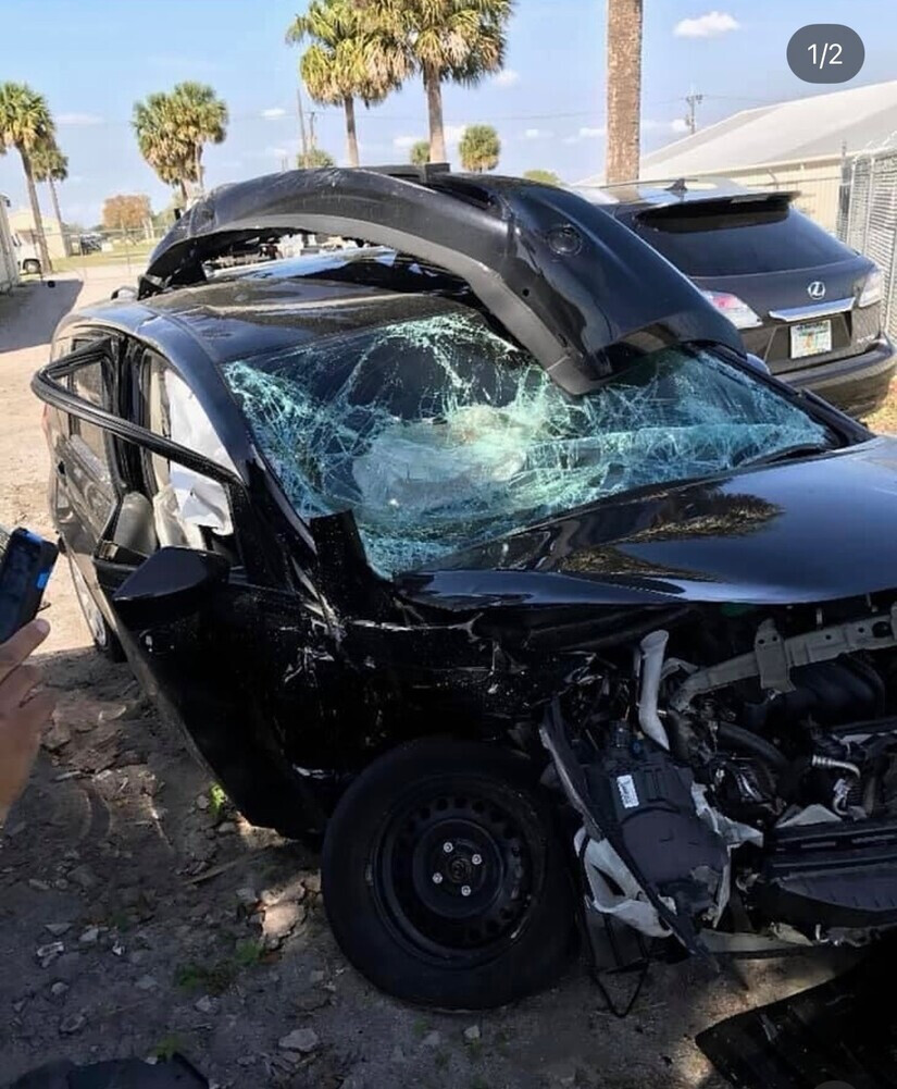 The accident that almost took Starlin's life left her vehicle completely destroyed (Photograph courtesy of Maria Starlin)Starlin isn't just a yoga instructor: she is also a pilates, barre, and stretch instructor whose focus is on wellness and hopes to help others heal.
